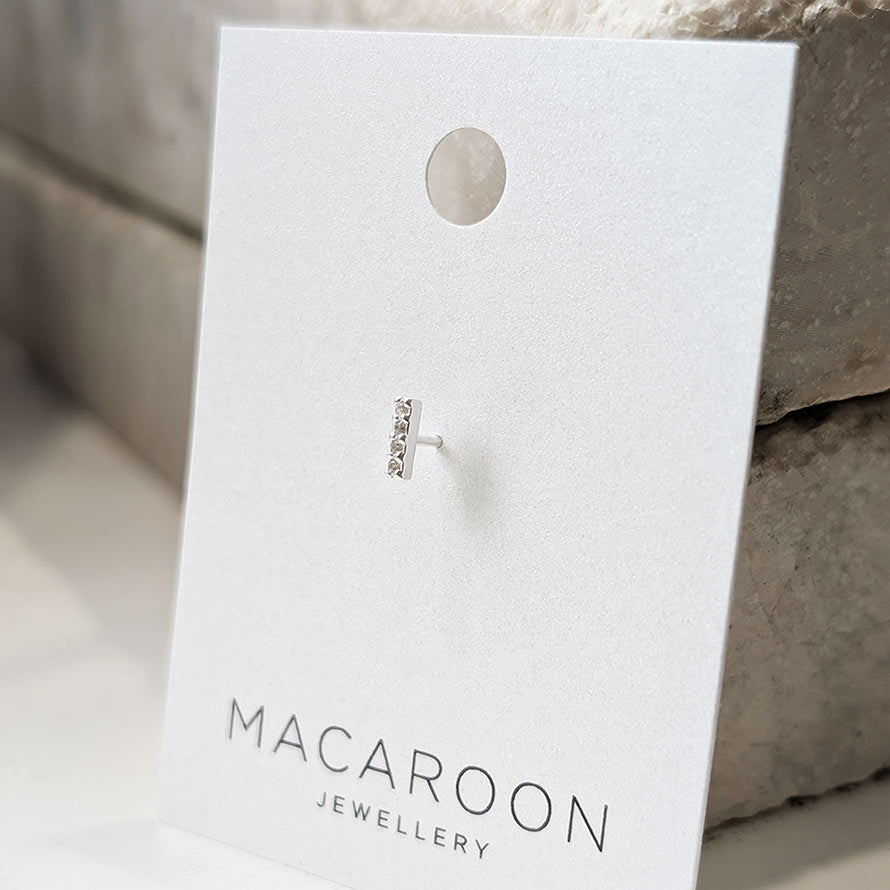 A sparkly bar helix stud earring. This chic little bar is set with clear glass crystals sits at the top of your ear beautifully. It is fixed in place with a post and screw ball fastening.