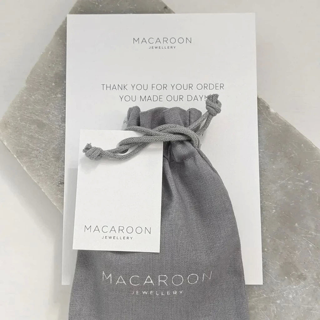 Each necklace is carefully wrapped in tissue paper and placed in an organic cotton pouch with pearlised card gift tag.